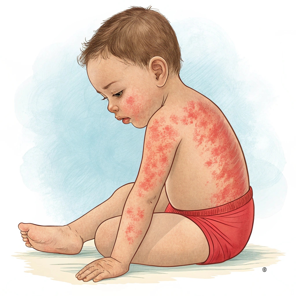 - Appearance:Red, itchy patches, often spreading beyond the diaper area.